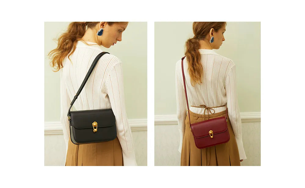 Ce sac élégant et compact est fabriqué en cuir de vachette fendu lisse et brillant avec une bandoulière modulable pour un look polyvalent et moderne. Ce sac chic convertible dispose d’une sangle ajustable permettant de le porter en épaule ou en bandoulière.