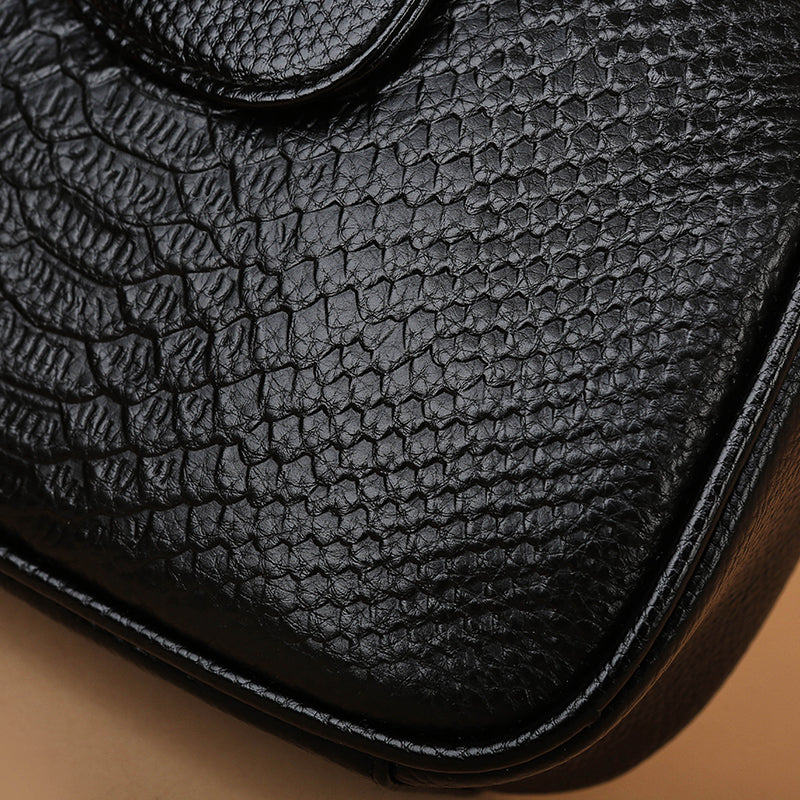 Parachevez votre style avec le Sac Bandoulière Noir Effet Croco, un incontournable en cuir grainé.