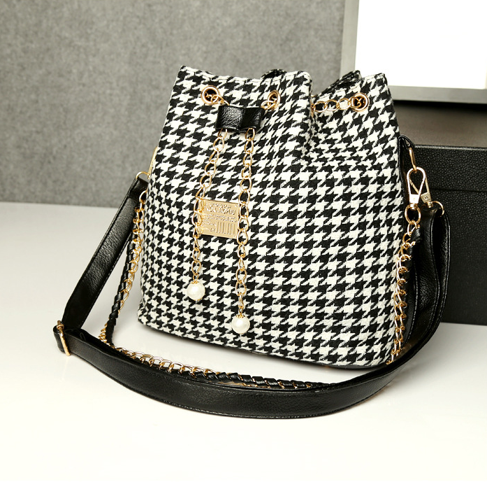 Le motif Pied de poule fait un retour remarquable dans les collections 2023. On le retrouve partout dans le prêt-à-porter. Vous pourrez associer ce sac besace avec un trench coat noir, un jean bleu foncé et des baskets blanches, par exemple.