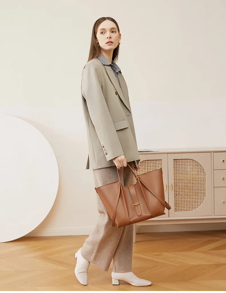 Le design innovant et distinct de ce cabas lui confère un caractère unique. Grâce à des boutons-pression internes, il est possible de replier les coins pour transformer sa forme selon vos besoins. Ce sac est également très fonctionnel avec ses deux paires de poignées : une courte pour un port au bras, l’autre longue pour un port sur l’épaule, garantissant un confort optimal tout au long de la journée.