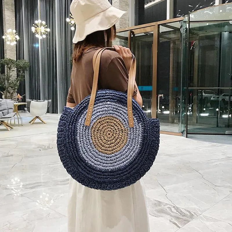 Laisser-vous séduire par le charme bohème et chic de notre Sac de Plage à la Mode, un sac rond en paille qui sublimera vos tenues estivales.