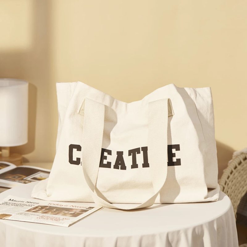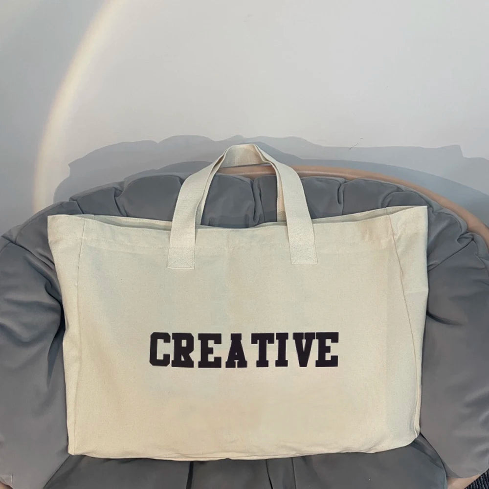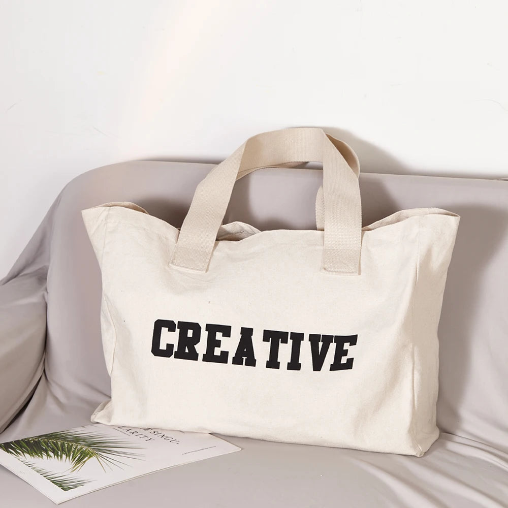 Avec son design sobre et moderne, c’est un accessoire polyvalent parfait pour la plage, les voyages, ou même les sorties en ville. De couleur blanche élégante et arborant une inscription “creative” à l’avant, ce Grand Sac de Plage en Tissu se distingue par son esthétique élégante. Équipé de deux grandes poignées épaisses, il offre un port confortable à la main ou à l’épaule, vous assurant une liberté de mouvement optimale.